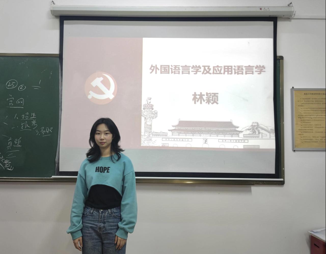 2021级外国语言学及应用语言学研究生林颖同学向大家分享了学硕专业备考经验,以及如何合理利用各种网络资源提高备考效率等。支部党员认真聆听,现场气氛热烈。