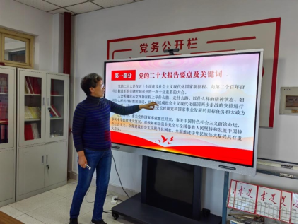 在党课讲授中,王宏华首先与支部党员一起学习领会了党的二十大报告中的主要内容,紧扣党的二十大报告中15个部分重点内容进行讲解,阐述了党的二十大召开的重要意义,并对党的二十大报告中着重强调的“中心任务”“中国式现代化”“两步走”“第一要务”“重大原则”“着力点”“国家创新体系整体效能”“全过程人民民主”等16个关键词进行了深入细致的宣讲。 随后,王宏华对二十大报告中关于教育创新的表述进行了梳理分析:党的二十大报告将教育、科技、人才“三位一体”统筹安排、一体部署,明确了科教兴国战略在新时代的科学内涵和使命任务。她强调,党的二十大报告是党和国家未来一段时期的施政纲领,科教兴国战略更加突出了教育、科技和人才在社会主义现代化建设中的战略支撑作用。她结合学校学院发展实际,通过介绍河南大学实施目标管理责任制的背景、河南大学目标管理体系、学院目标管理责任任务表,让大家充分认识当前学校实施目标管理责任制的重要意义,是学校加快推进“双一流”建设步伐的有力保障和重要举措。