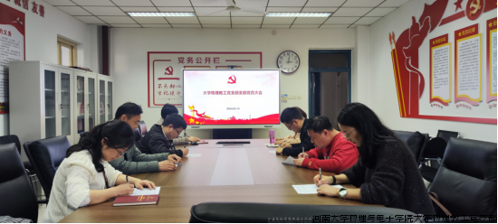 2024年3月14日,大学物理教工党支部在学院A楼309召开了第一季度支部党员大会,会议由支部书记康缈主持。本次支部大会主题为:支部党员大会暨民主评议会。