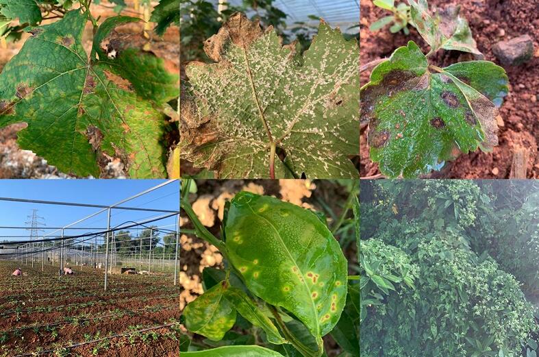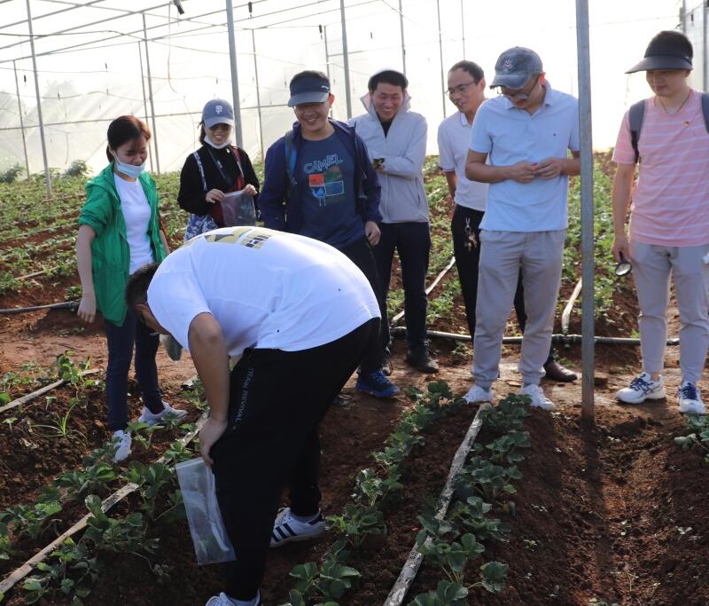 首站来到海口市大样村桂海阳光种植基地,此处葡萄霜霉病、草莓炭疽病、柑橘溃疡病、外来入侵生物薇甘菊等病虫草害肆虐,让种植基地管理人员头疼不已,老师们运用专业知识,为基地管理人员分析问题并出谋划策。
