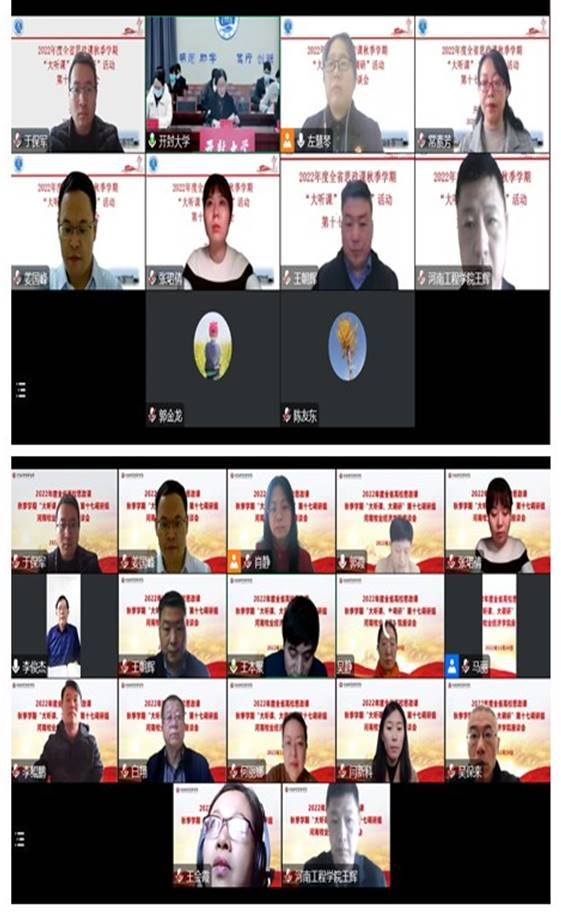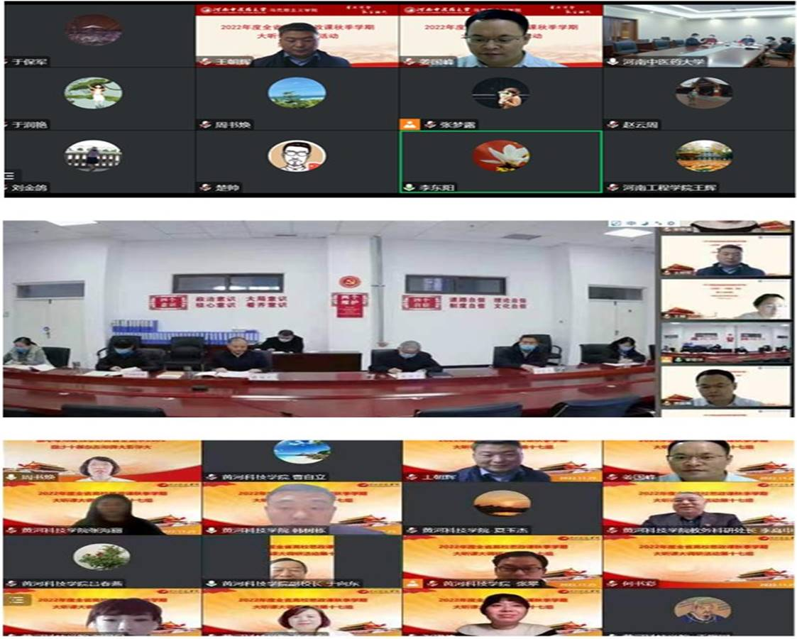 为深入贯彻习近平总书记在中国人民大学考察时的重要讲话精神,认真落实教育部相关会议精神,根据《中共河南省委教育工委办公室 河南省教育厅办公室关于开展 2022 年度全省高校思政课秋季学期“大听课”“大调研”活动》的通知安排,11月15日—11月25日,由马克思主义学院院长姜国峰教授担任组长,河南警察学院马克思主义学院副院长王朝辉、河南工程学院马克思主义学院教授周书焕、河南财政金融学院马克思主义学院教师张珺倩等共同组成的第17调研组,顺利完成了对河南中医药大学、河南牧业经济学院、黄河科技学院、郑州铁路职业技术学院、黄河水利职业技术学院、河南交通职业技术学院、开封大学、郑州幼儿师范高等专科学校、河南对外经济贸易职业学院等9所高校“大听课”“大调研”任务。