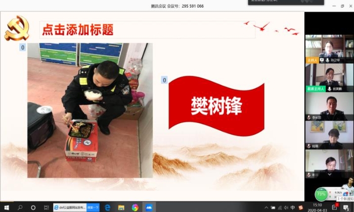 在2020年清明节到来之际,为缅怀、致敬在抗击疫情和维护稳定一线因公牺牲的公安民警,传颂英雄事迹、激励广大党员向英雄学习、强化责任担当,4月3日下午,法律系教工党支部通过视频会议,举行微党课“周周上”线上活动。本期微党课以“学习樊树锋同志先进事迹,把疫情当教材做好教学工作”为主题。由陆丽老师主讲,系党总支书记林黄鹂主持,法律系全体教师参加。