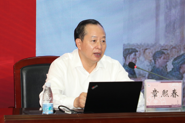 10月15日下午,华南理工大学党委书记章熙春以“弘扬伟大建党精神,赓续百年红色血脉,争做新时代红色传人”为主题,讲授了一场精彩的“思政第一课”。教育部党史学习教育高校第九巡回指导组副组长刘永章出席活动。“习语心传”学生党员宣讲团、“青马工程”培训班成员及各院(系)学生代表在逸夫人文馆报告厅现场听课,同时各院(系)共设立36个分会场在线收看。学校党委常委、副校长李正主持活动。