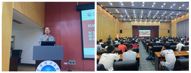 10月17日下午15时,机械与汽车工程学院2021级新生入学教育“党委书记思政第一课”在大学城校区举行。学院党委书记、学生工作部(处)长晋刚教授,学院党委副书记李嘉老师,2021级本科生辅导员及2021级入党申请人共170人参加了本次活动。