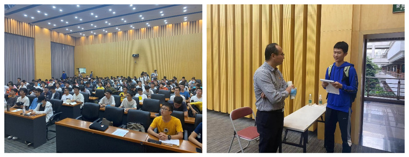 晋书记以理想、格局、情怀为主题,结合建党百年的伟大征程和红色甲工的历史文脉,从专业教育和个人成长两个维度,通过分享红色甲工机械科阮啸仙等校友的革命故事、瞿金平院士为学求学治学的奋斗历程,勉励2021级新生要树立崇高的理想信念;通过分享新时代大学生党建与日常思想政治教育中存在的新情况、新问题,引导2021级新生要具备全球化视野,树立长远目标,不断提升人生格局;通过分享华工校友企业音书科技的社会责任、李莎支教团的无私奉献等故事,引导2021级新生将个人发展融入国家民族大业,涵养自身的家国情怀。两个小时的思政课,在2021级新生中引起了强烈的反响和共鸣,学生纷纷表示会学好机械专业知识,提升思想境界,为中国制造2025贡献自己的一份力量。