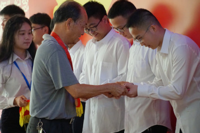怀着激动的心情,老党员们纷纷结合自身在党50年的经历分享感悟和体会。陈世煌老师诚以自身成长经历深情讲述“没有共产党就没有新中国”。黄有发老师表达了对共产党的感激之情,勉励新党员要一路向前,成为国家的栋梁。吴春苗老师则结合自身学习、工作经历,寄语新党员:“国家还在发展,急需机械制造领域工程技术人才,作为青年党员,要放眼世界、放眼未来,为国家做出贡献”,并向学院赠送自己亲手设计制作的校训石雕塑、华工戒指。小小的礼物承载着老同志对学院深深的祝福,现场感动满满!