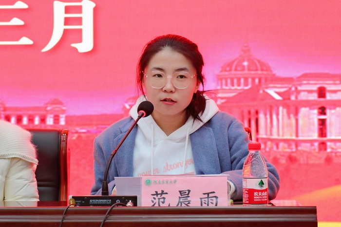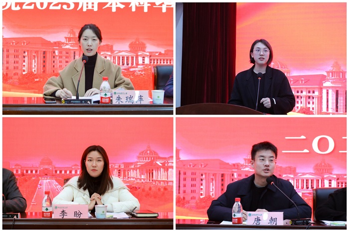 李盼、朱瑞萍分别宣读了《农学院研究生就业管理办法》和《2023届本科毕业生就业创业工作实施办法》。相关就业代表雷邵亮,创新创业代表龙昊驰,考取研究生代表杨寒星,退役士兵代表范嘉琪分别进行了发言,他们结合自身经历从不同的职业选择方向给予毕业生不同的建议。