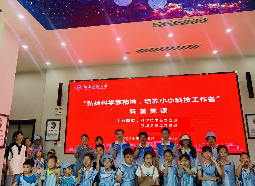 两个支部以2024年“全国科技工作者日”系列活动之“长沙亲子科学嘉年华活动”为契机,在天文馆国家科普基地,宣传委员王接词组织支部党员、青年教师及天文协会会员,带领小学生们观看展览,现场观测互动,普及天文知识,讲解宇宙奇观,近400名中小学生和家长沉浸式体验了一场视觉与心灵的盛宴。