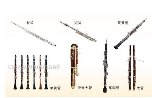 木管组包括短笛、长笛、双簧管、单簧管、英国管、大管等。