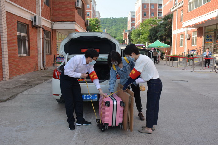 “夏日炎炎,不仅有老师开‘爱心专车’直接将我送到了宿舍楼下,还帮助我搬运行李,真是太幸福了!”淮南师范学院的多名毕业生在朋友圈内分享了自己于返校复学当日,教师开车帮助自己运送行李到宿舍的照片。