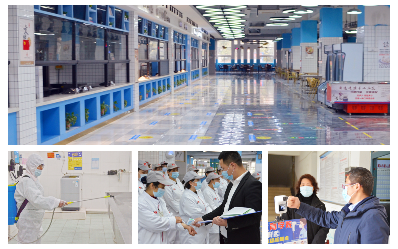 后勤保障与基本建设处处长徐博表示,“学校后勤保障工作严格按照各级疫情防控要求,始终坚持把师生生命安全和身心健康放在第一位,坚定不移把各项疫情防控决策部署落到实处。”后勤通过积极对接物资供应商,已统筹做好医疗用品、生活必需品等各类物资的采储工作,目前学校米面油等大宗生活物资储备基本保证一周库存量,且货源采购、物资配送等各环节高效畅通,基本保证师生生活无忧。保洁人员加强每天对学生宿舍、食堂、浴室、教室、楼宇等校园公共场所的消毒杀菌、开窗通风工作。餐饮方面,后勤部门在食堂张贴“一米线、顺向就餐”标识标签,引导广大师生“保持一米安全距离”,共同构建疫情防控安全线。在强化人员管控方面,后勤部门严格落实各类职工“两码一温”核查,做到日报告、零报告。