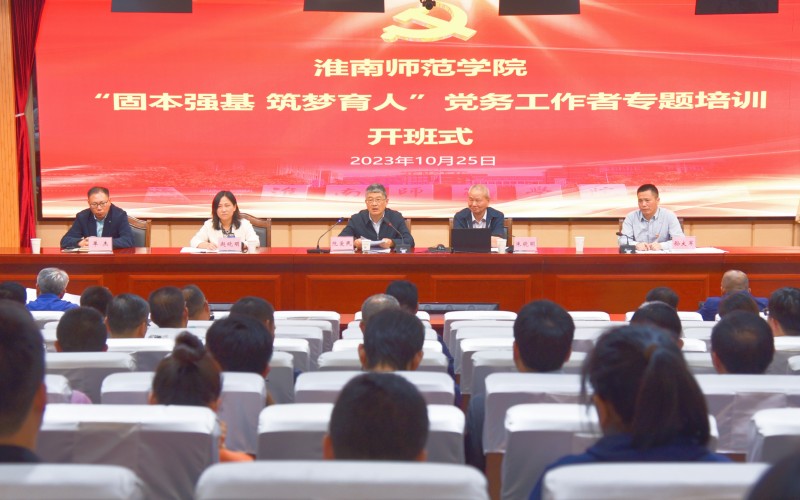 10月25日下午淮南师范学院在知明湖学术报告厅召开“固本强基 筑梦育人”党务工作者专题培训开班式,淮南师范学院党委书记阮爱民出席活动并讲话。安徽省委教育工委组干处原一级调研员朱晓明,安徽大学党委常委、宣传部部长赵晓明,淮南师范学院党委委员、党委组织部部长孙大军,党委委员、党委宣传部、党委统战部部长单杰,各院系级单位党组织书记,各党群部门负责人,各院系级单位党政办公室主任,各党支部书记参加了会议。会议由孙大军主持。