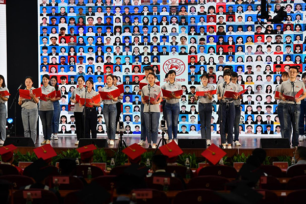 6月28日上午,学校以“1+23+10000”(学校国际学术报告厅一个主会场,23个学院分会场,10000个学生及家庭云会场),线上线下同步进行的方式举行了2020届毕业生毕业典礼暨学位授予仪式。校友代表、1978级物理专业校友、全国政协委员、中国科学院院士、复旦大学教授、博士生导师龚新高,学校全体在家校领导为2020届毕业生颁发毕业证、学位证,拨转流苏,与毕业生们共同见证了毕业典礼的难忘时刻。