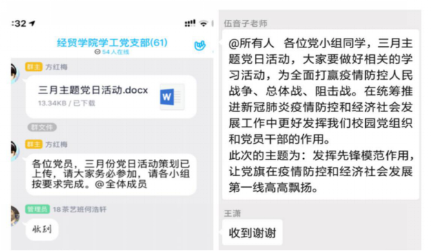 经贸学院学工党支部开展“发挥党员先锋模范作用”“云”主题党日活动