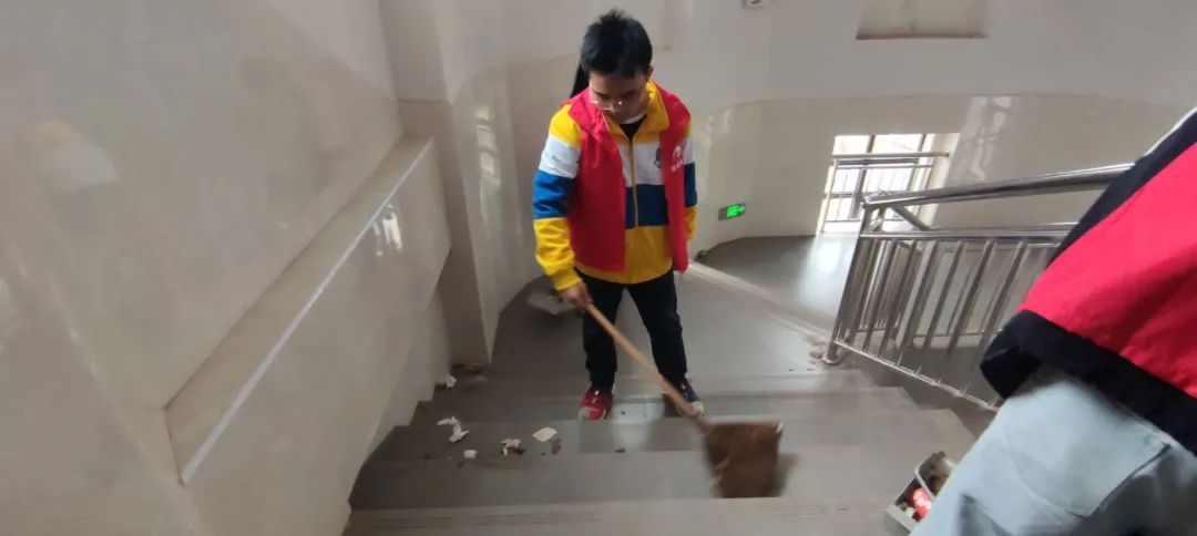“茅檐长扫净无苔,花木成畦手自栽”。每一位预备党员们自开始,都尽心尽责的清扫教学楼的每一个角落,也许,等待他们的是满是灰尘的楼道、也许,等待他们的是深印在地板的泥土、也许……但是他们从未退缩,因为这既是责任,也是担当。