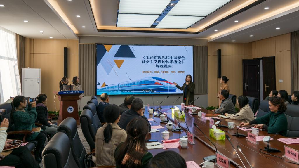 最后,2021年湖南省职业院校思想政治教育教学能力竞赛思政课赛项第一名获奖团队——学校马克思主义学院郭晨、张楠楠、廖莉、韩苗苗团队为在场的领导老师呈现了一场高水平的思政课说课展示,正式开启了实质性的对口协作进程。
