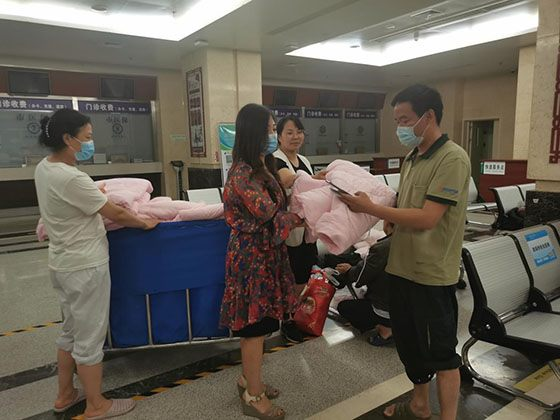 为滞留患者发放被褥