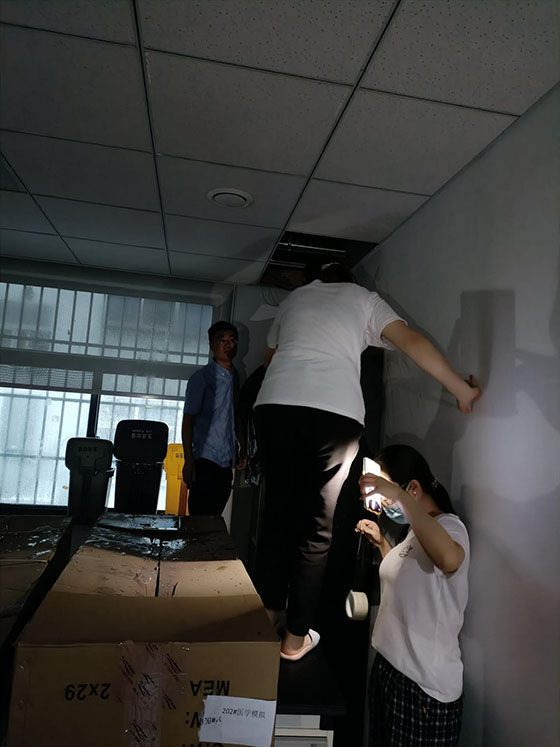 为切实做好医院汛期安全工作,积极做好防汛应急工作。医院党员职工在党委领导下,积极行动,主动作为,后勤部、保卫科人员全力迎战防汛攻坚战,及时疏通排水通道,搬运摆放沙袋,疏堵结合,引导改变倒灌雨水的流向,对排水管道进行全面清掏及清理。同时分岗严守,设立机动队,24小时不间断巡逻,及时处置水患,严防汛期内灾害发生。党委办公室、院长办公室、医务部、护理部等各部门的人员严格执行战时工作机制,及时开展紧急抢救工作,协调物资、餐饮等各项事宜,全力做好防汛保障准备。晚上11点,医院病案室漏水严重,行政在岗职工第一时间涉水赶到现场开展排涝抢险工作,转移物资,排除积水,减少损失,认真检查院内其他各处防汛情况。同时为保障患者群众的安全,医院组织相关人员及时为门诊滞留的患者送去了被褥。医院急诊科坚持患者至上,克服困难正常出诊,抢救病人。其他各科室积极主动结合自身情况组织抢险,清除室内积水,转移办公物品,有效避免了医院大型设备、重要物资、医疗药品等财产受到损害。