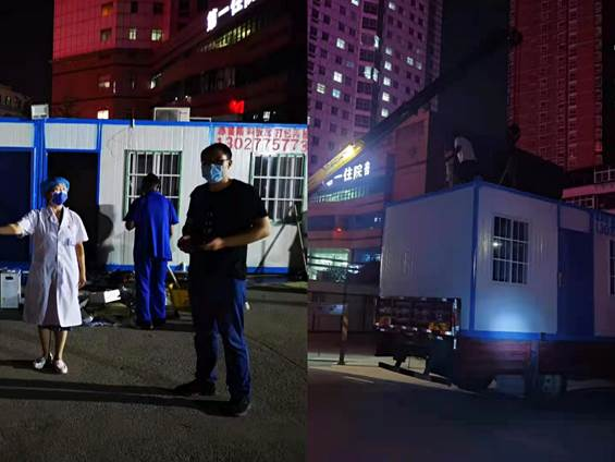 8月1日下午,在接到医院通知需组建核酸集中监测点后,后勤党支部书记、后勤部主任秦静海紧急安排,连夜进行检测用房吊装、通水通电、空调安装、保洁消杀等工作。