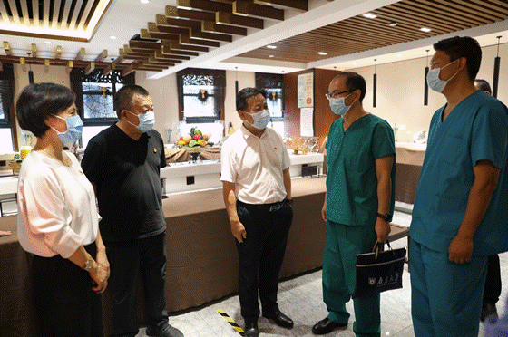8月5日,医院党委书记翟剑波带队看望慰问进驻定点医院的医疗队员