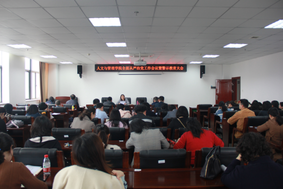 4月22日下午,人文与管理学院在学院会议室召开全面从严治党工作会议暨警示教育大会,学院党委书记章小纯传达了校(院)全面从严治党工作会议暨警示教育大会精神,并通报了近三年来违反《新时代高校教师执业行为十项准则》典型案例。会议由学院党委副书记、副院长程华初主持,学院全体领导班子、教职工参加会议。