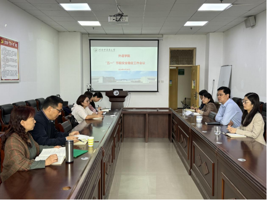 4月30日下午,外语学院在教学实验大楼A638召开全体教师安全工作会,再次传达外语学院在教学实验大楼A638召开全体教师会议,对全省、学校安全工作会议精神进行了再传达,再落实,对近期安全工作进行了再安排,再强调。
