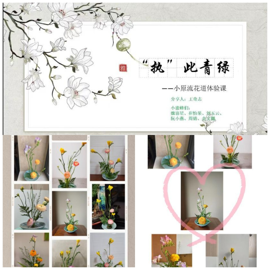 腾讯会议平台并没有影响女教工学习的热情,大家边看边学,边交流边探讨,享受着花艺创作的乐趣和插花艺术带来的欢乐,尤其是在国家基金申报提交前后,举办的花艺活动,既以难得的轻松闲暇安抚女教工的紧张心情,更能提升女教工创造美欣赏美的能力。