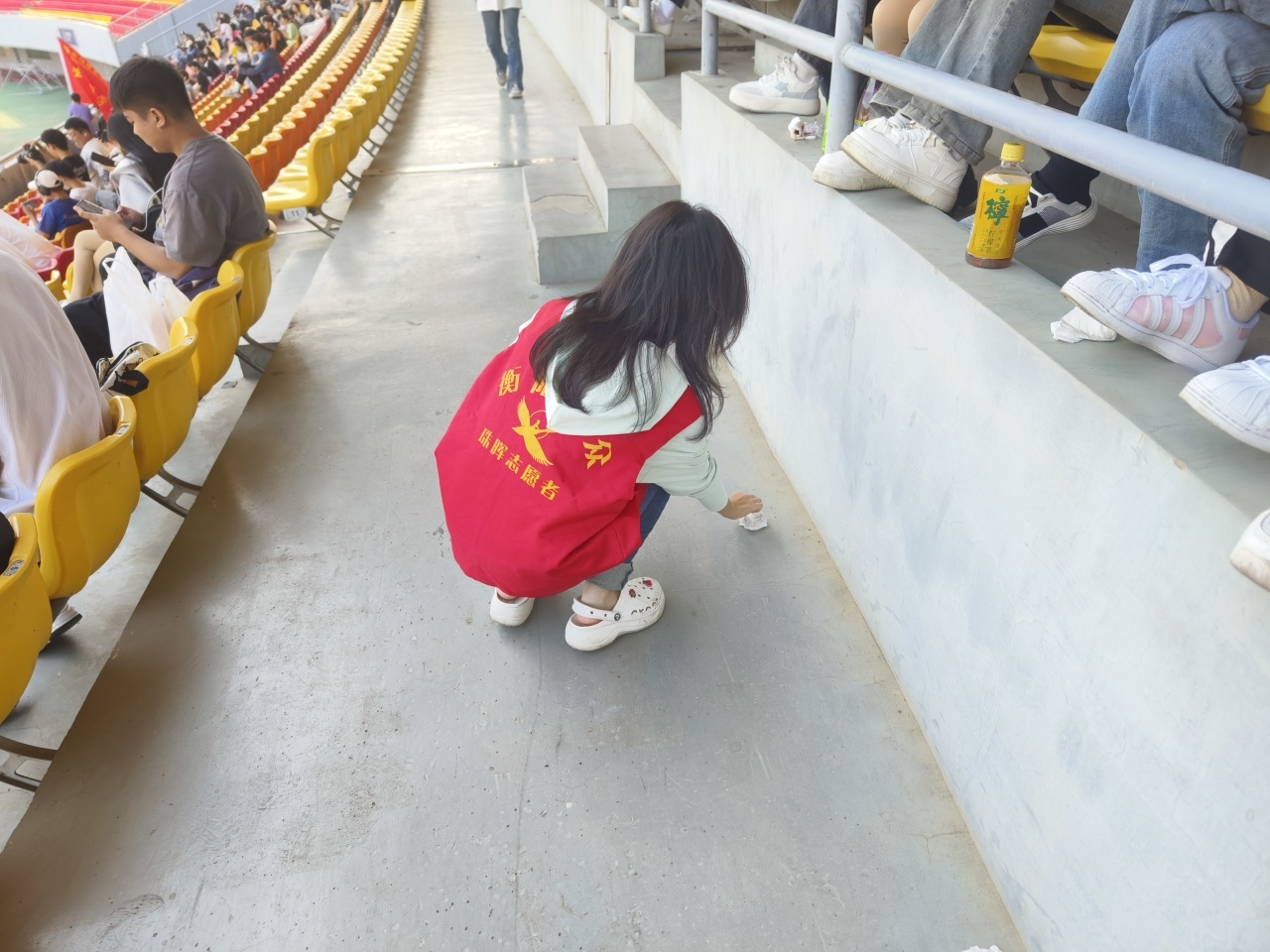 我院学生党员们于运动会观众席和服务台处值班,帮助老师和同学了解运动会情况,并前往观众席上清理垃圾。他们忙碌的身影穿梭在观众席间弯下腰捡垃圾,保持环境整洁,为运动员和观众创造良好的比赛环境。同时,在服务台值班的志愿者们也毫不懈怠,他们以热情的态度和已有的经验,为前来咨询的运动员和观众提供帮助,确保比赛的顺利进行。我院学生党员们积极参与,充分发挥先锋模范作用,用实际行动充分体现了担当精神和责任意识。
