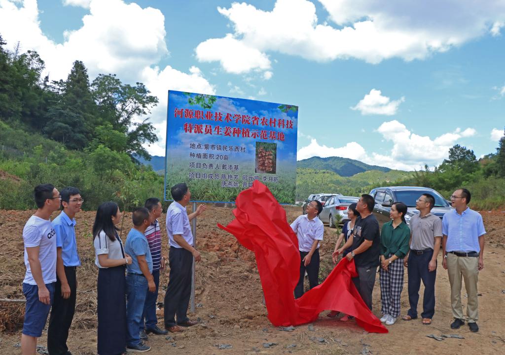 14日上午,河源职业技术学院(以下简称“河职院”)省级农村科技特派员生姜种植示范基地在龙川紫市镇民乐西村揭牌。这是我校首个省级农村科技特派员规划实施的“一镇一业,一村一品”项目。生姜种植面积20亩,预计亩产约8000斤,每年可增加村集体经济收入40多万元。