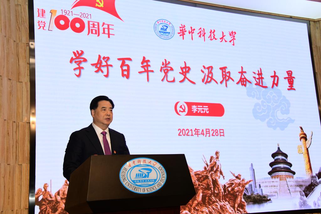李元元勉励全校师生牢记习近平总书记殷切嘱托,继续高举习近平新时代中国特色社会主义思想伟大旗帜,传承好华中大红色基因,“听党话、跟党走”,敢担大任、勇攀高峰,以更加优异的成绩迎接中国共产党百年华诞,在新时代继续书写新的辉煌篇章。