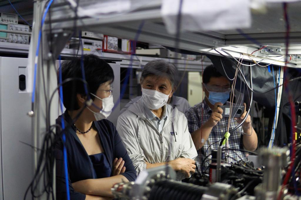 专题学术报告开始之前,李院士、中国计量科学研究院微波标准频率实验室主任房芳研究员和曹士英副研究员还在陆泽晃教授的陪同下参观了引力中心时间频率小组的实验室,对我中心科研工作所取得的成绩给予肯定并提出了宝贵的建议。