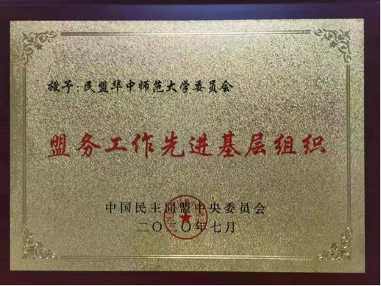 2020年8月,为了庆祝中国农工民主党成立90周年,农工党湖北省委会对新时代以来,在各项工作中涌现出来的先进集体和先进个人进行表彰,农工党华中师范大学委员会荣获“优秀基层组织”称号。