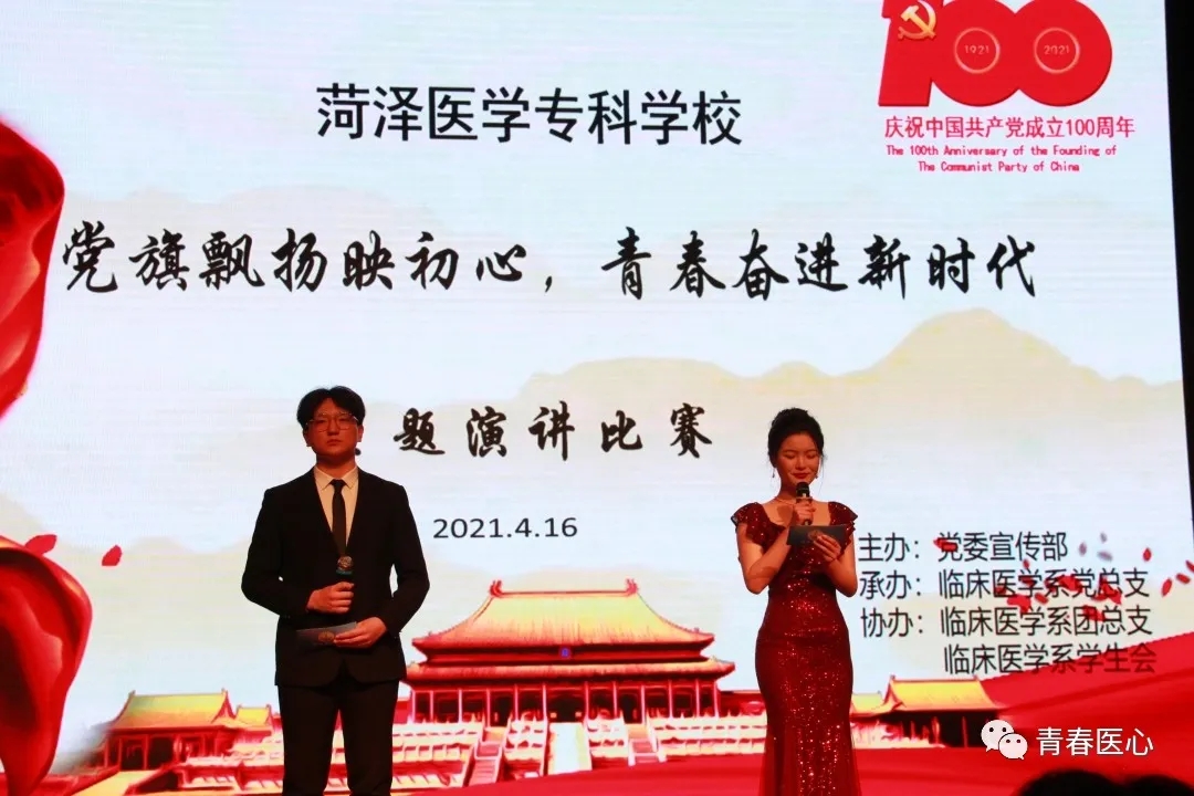 为庆祝建党100周年,奋进新时代,启航新征程,4月16日,由我校党委宣传部主办,临床医学系党总支承办,临床医学系团总支和系学生会协办的“党旗飘扬映初心,青春奋进新时代”主题演讲比赛在学术报告厅成功举办。学校领导和各部门负责人,各党总支书记出席大赛现场并担任评委,教职工和学生共500余人观看了比赛。