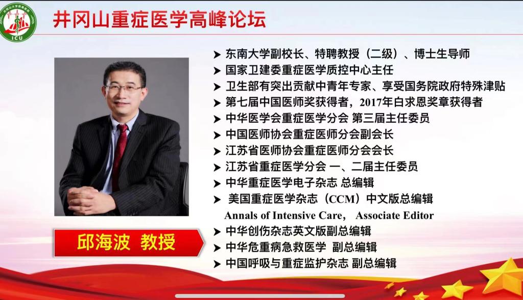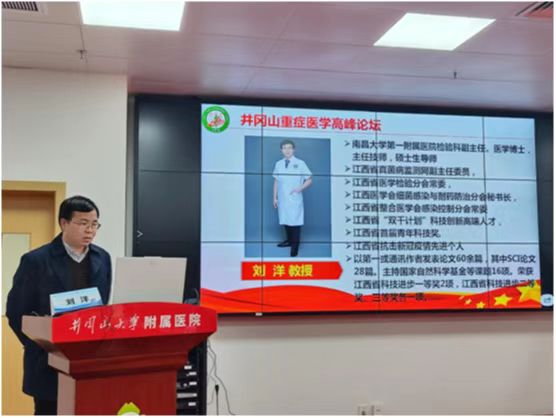 本次学术会邀请了中华医学会重症医学分会第三届主任委员、东南大学附属中大医院党委副书记、纪委书记、博士生导师、2017年“白求恩奖章”获得者邱海波教授;中国医师协会重症分会常委、江西省医学会重症医学分会主任委员、博士生导师钱克俭教授;南昌大学第一附属医院重症医学科主任、主任医师、博士生导师曾振国教授;南昌大学第一附属医院重症医学科副主任、主任医师、博士生导师刘芬教授;南昌大学第一附属医院神经内科副主任、神内ICU主任、硕士生导师王联群教授;南昌大学第一附属医院公共卫生首席专家、医学博士、主任医师、感染控制处处长向天新教授;南昌大学第一附属医院检验科副主任、医学博士,主任技师,硕士生导师刘洋教授;南昌大学第一附属医院急诊科副主任 、博士研究生导师杨继斌教授;南昌大学第一附属医院创伤急救中心主任兼急诊外科主任陈海鸣教授;南昌大学第一附属医院护理部主任、护理学教研室主任、副主任护师,硕士生导师曹英教授;南昌大学第一附属医院重症医学科护士长,副主任护师,硕士生导师江榕教授等11位专家和吉安市8位专家来为我们进行学术讲座19场次。内容涉及新冠肺炎、重症感染、创伤急救、机械通气、血流动力学监测、液体复苏、ECMO、重症凝血、重症护理等方面相关理论、实践知识。(文/图:张 鸿 审核:鄢永安 周 臻 彭晓露)