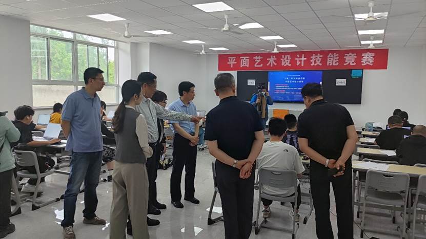 5月17日下午,我校2023年“三会”技能竞赛会——平面艺术设计大赛决赛在崇文楼N101举行,文创设计专业群师生同台竞技。理事长、校长孙永如,党委书记卢桂平,党委副书记陈荣华,党委委员、副校长刘俊,副校长任雨等校领导应邀观摩指导。