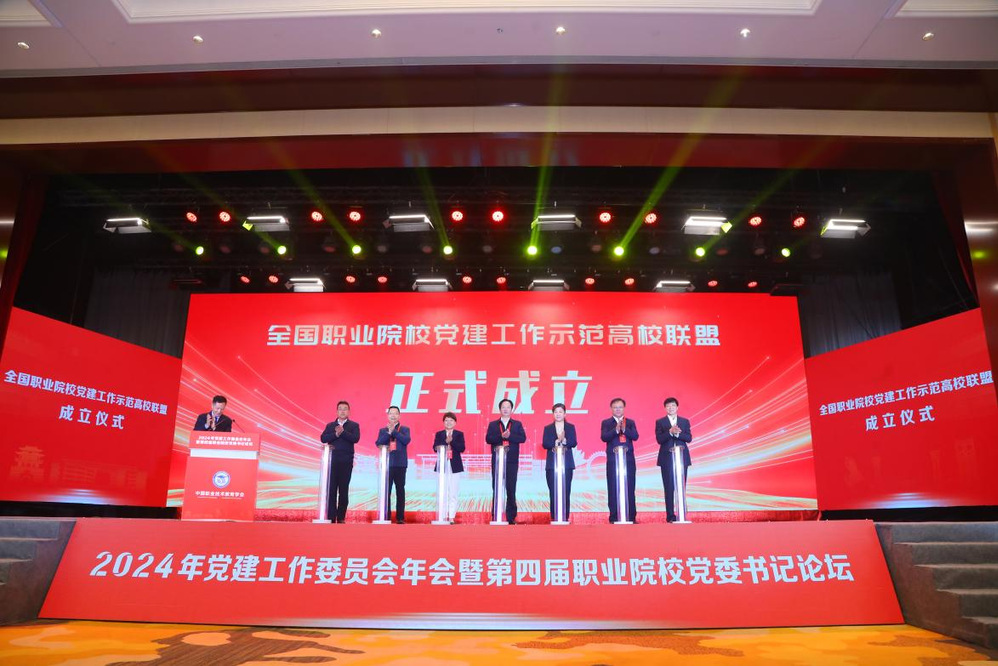 据悉,本次会议以“强化思政引领力,推进新时代职业教育高质量发展”为主题,深入学习贯彻党的二十大、二十届三中全会精神和全国教育大会精神,以高质量党建引领推动职业教育高质量发展。中国职业技术教育学会会长、教育部原副部长鲁昕做了主旨报告。金华职业技术大学作为全国职业院校党建工作示范高校联盟七所发起单位之一,与深圳职业技术大学、河北工业职业技术大学、陕西工业职业技术学院、湖南化工职业技术学院、山东交通职业学院、山东城市建设职业学院现场共同启动联盟成立。