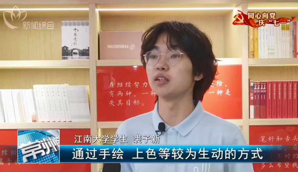 十米长卷让红色精神“火”起来凝力量。传播红色文化,要创新传播方式,注重挖掘红色文化的当代价值,才能让红色精神深入群众、深入人心。7月1日,“青春向党颂党恩 十米画卷展红颜”七一主题活动在常州三杰纪念馆顺利举行,当实践团成员“请出”长达十米的原创手绘长卷时,现场爆发出雷鸣般的掌声。十米长卷由三部分组成,分别以瞿秋白、张太雷、恽代英三个纪念馆作为开篇线索,依次复刻了瞿秋白英勇就义、张太雷主持教导团誓师起义、恽代英创办利群书社等历史事件,同时呈现了“常州三杰”的革命箴言、诗文遗作。流畅的线条、生动的表情、雄浑的笔墨,展示了先辈们高尚的革命情操和崇高的人格情怀。画笔轻轻,却描绘出了历史的厚重感和凝练感,更流露出知党、敬党、爱党、诵党的真实情感。活动当天,实践团成员在“常州三杰”纪念馆完成了作品的最后上色,用十米画卷为“七一”献上了一份别出心裁的礼物,以特有的方式与三位百年前的“95后”展开一场跨越时空的信仰对话,敬先烈、忆初心、担使命。