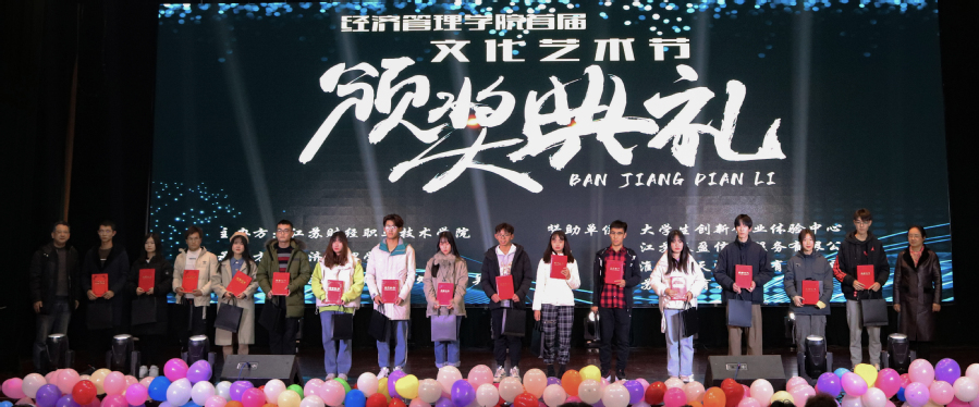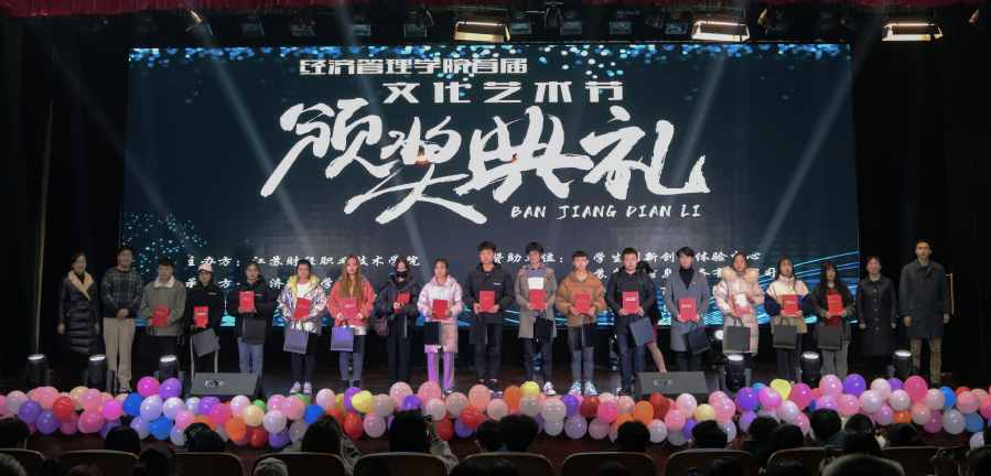 本届经管文化节,以“突出学院专业特点,助推专业技能提升”为目标,精心策划了主持人大赛、“用英文讲中国传统故事”——跨文化能力大赛、外贸知识竞赛、“沙盘模拟企业经营沙龙”活动暨工商管理技能竞赛、“我爱财院,我为财院代言”——短视频大赛、建筑CAD制图大赛等活动,内容丰富,形式多样,特色鲜明,集知识性、实践性、娱乐性、趣味性于一体,为同学们送上了一道道精彩纷呈的文化盛宴。王丹在致辞中首先向我院经管文化艺术节的成功举办表示了热烈的祝贺!接着肯定了这些活动对启迪同学们的才智和灵性,发挥同学们的才艺和特长所起到的积极作用,为今后的专业学习和参加相关技能竞赛打下了良好基础,必将对促进学生整体素质的提升起到推动作用。文化节已成为培养同学们职业素养、个人技能、艺术审美情趣的炫耀舞台!最后她也对同学们提出了殷切希望,希望同学们在大学生涯中能坚定自己的理想,并执着地为之而奋斗,希望同学们能够好好把握住自己的青春时光,不断锻炼自己的能力,做到全面发展,散发出自己身上最耀眼的光芒。随后,晚会嘉宾上台分三批为本次文化节系列活动中所产生的6名一等奖、18名二等奖,36名三等奖获胜选手颁奖并合影留念。