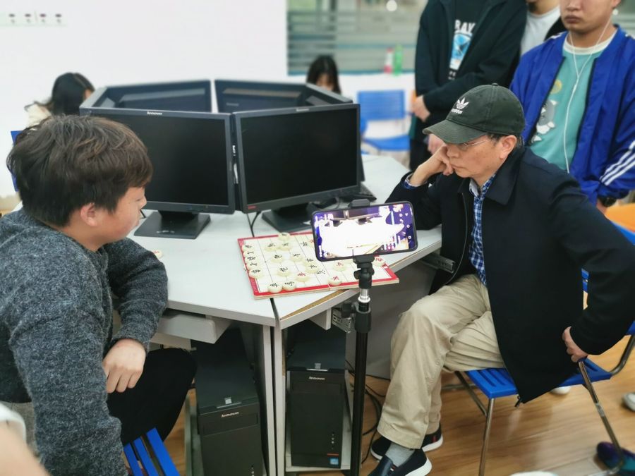 党总支副书记黄海梅首先将本次活动的目的进行了介绍,她希望大家通过本次对抗赛活动切磋棋艺,以棋会友,赛出水平,赛出风格。随后,杨军学老师与棋社社长邓经财展开了激烈的对弈,现场的社员齐聚一旁观战学习。最终,经过半个多小时的较量,杨老师获胜,并给大家做了残局讲解,大家感觉收益匪浅,都争着要和杨老师对弈学习。
