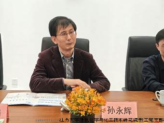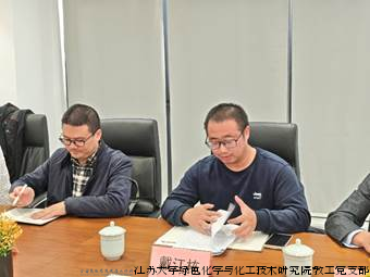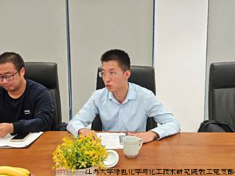 江苏大学化学化工学院院长、绿色化学与化工技术研究院教工党支部书记潘建明对学院的基本情况、科研方向以及人才培养等方面进行了全面介绍。潘院长表示,学院一直致力于推动化学化工领域的科学研究与技术创新,期待与企业界开展更深层次的合作。此外,对党支部的基本情况、党建特色、现有平台、立德树人等进行了介绍。