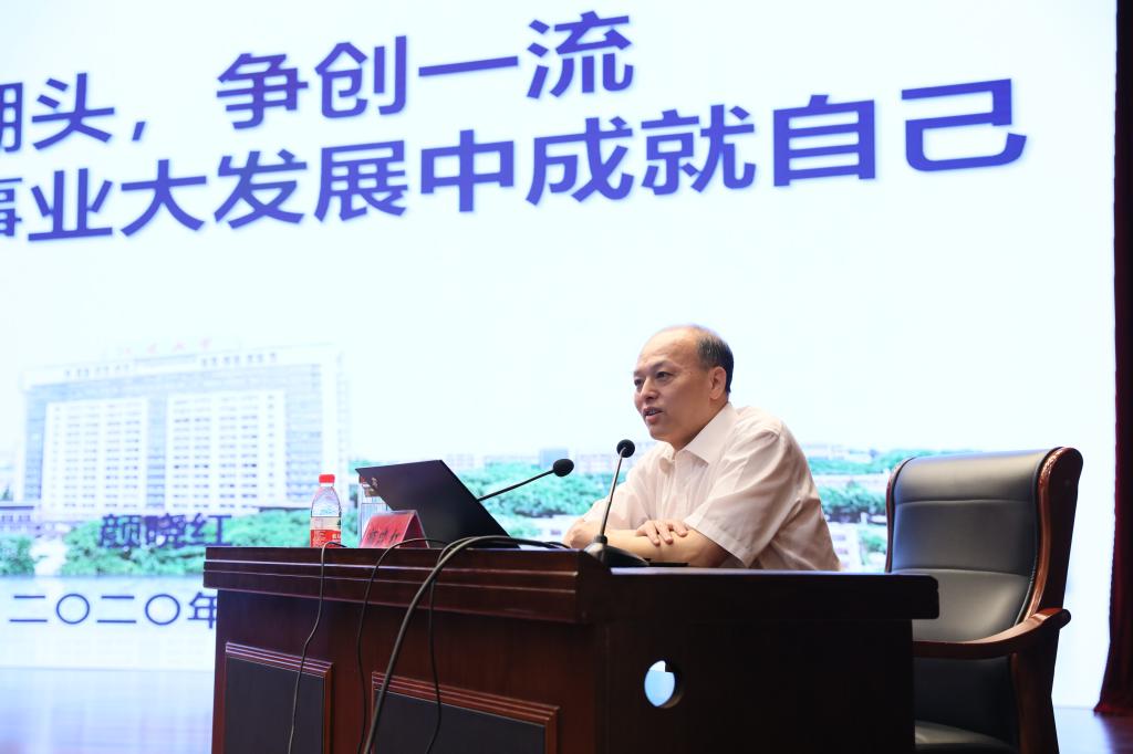 校长颜晓红作题为《勇立潮头,争创一流,在贡献学校事业大发展中成就自己》的专题报告,全面分析学校事业发展的机遇与挑战,从一流文化引领、一流治理体系、一流师资队伍、一流育人理念等四个维度深刻阐述推进“双一流”创建和高水平研究型大学建设的具体举措,提出大家要践行立德树人核心使命,打造江苏大学“江苏”品牌,擦亮“工中有农,以工支农”金字招牌,努力按照培养年轻干部工作上突出“政治强、学养深、眼界宽、接地气”的鲜明指向的要求,以贡献助推个人生涯发展。
