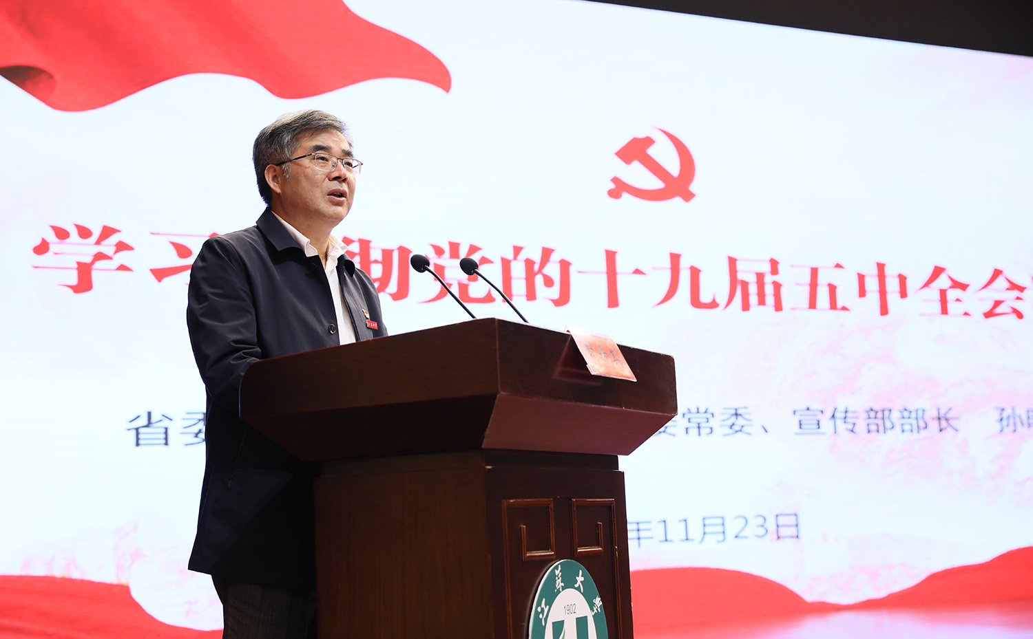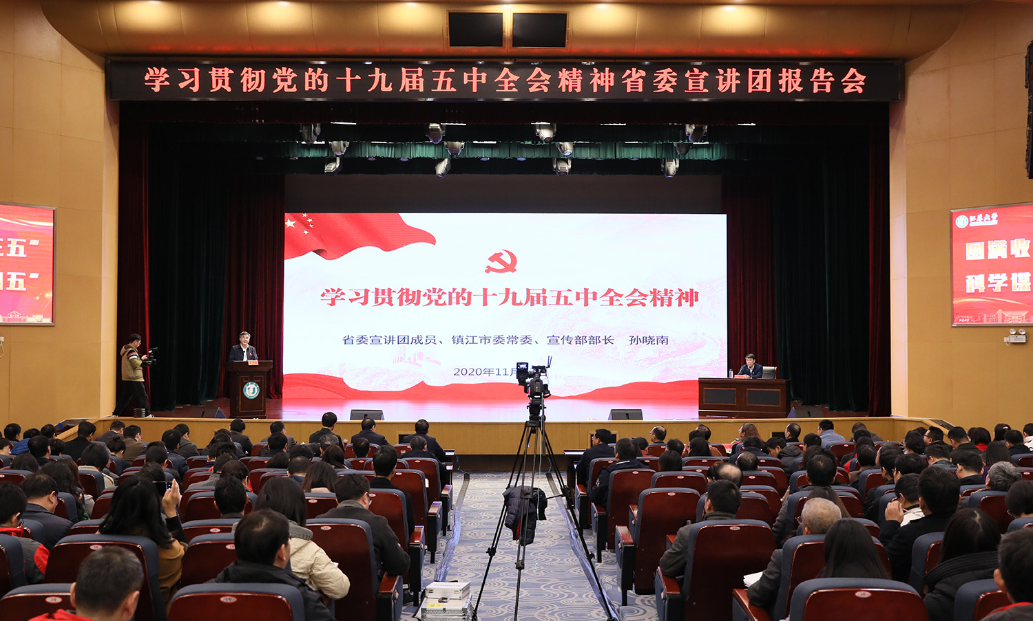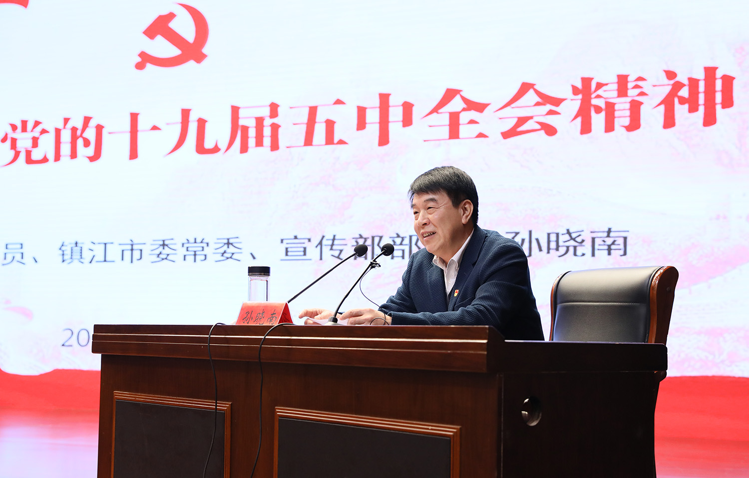11月23日,根据省委统一部署,省委宣讲团成员、镇江市委常委、市委宣传部部长孙晓南来我校,宣讲党的十九届五中全会精神,与我校师生一起,回顾我国现代化建设的历史进程,共话党和国家事业取得的历史性成就,展望“十四五”和2035年发展的美好蓝图。