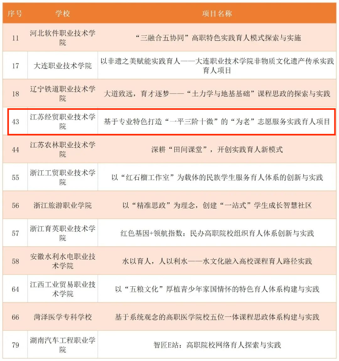 近日,教育部办公厅发文公布高校思想政治工作精品项目、高校思想政治工作中青年骨干、高校原创文化精品、高校思想政治工作研究文库入选名单我院《基于专业特色打造“一平三阶十微”的“为老”志愿服务实践育人项目》成功入选2023年度高校思想政治工作精品项目。