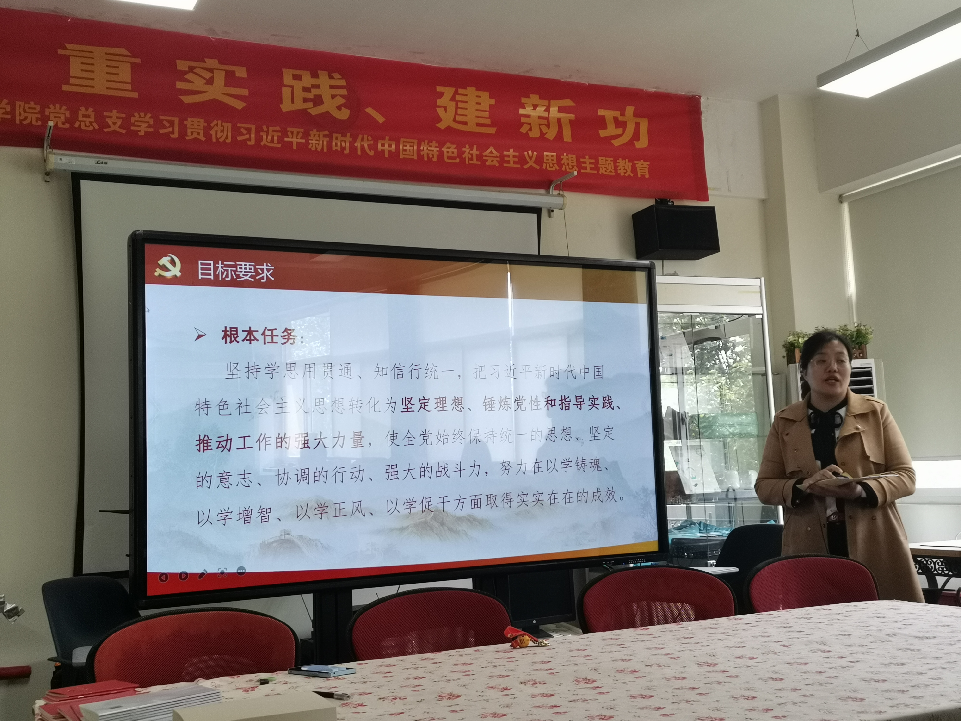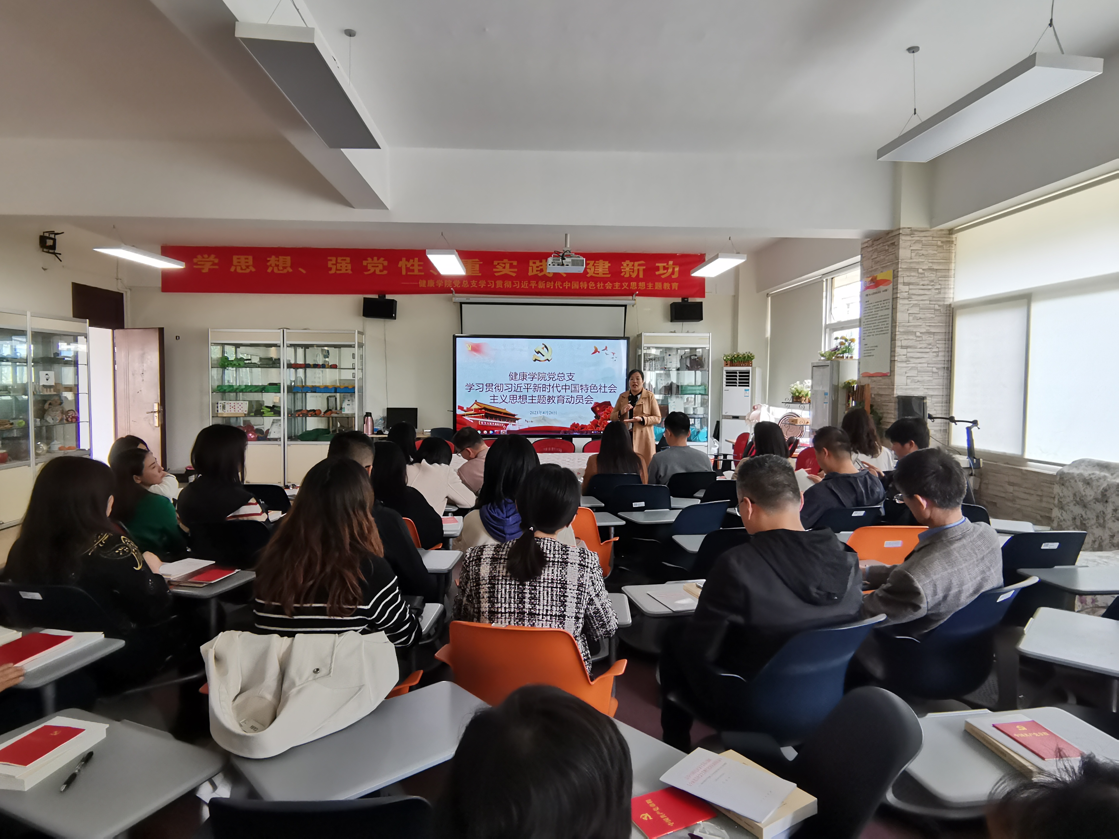 4月26日下午,健康学院党总支在博雅301召开学习贯彻习近平新时代中国特色社会主义思想主题教育动员会,会议由党总支书记葛伟丽主持。