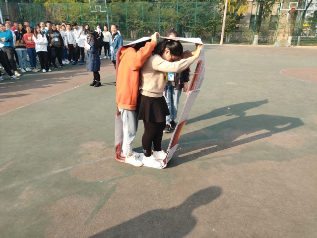 活动开始,生活部部长王姗姗先简要的向大家介绍了活动流程。之后,在工作人员的组织下,开始了第一个暖场游戏一一爱的抱抱。同学们按照主持人随机指定的数字抱在一起,紧张拘谨的气氛在一片欢笑声中烟消云散。暖场游戏过后,便开始了真正的计分游戏,“踩气球”、“吸管运输”、“ 同舟共济”等娱乐性高、趣味性强的团队合作游戏逐次展开。期间,辅导员老师们不时加入到活动项目之中,使现场的气氛更加热烈起来,大家踊跃参加,现场一片欢呼,为老师、为自己喝彩!最后,在欢笑声中本次活动圆满结束,参与本次活动的同学和工作人员合影留念。