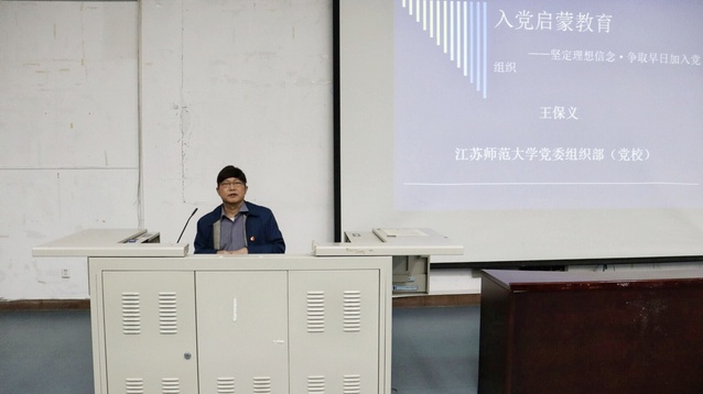 10月11日下午2:30,教育科学学院(教师教育学院)邀请江苏师范大学组织部副部长、党校常务副校长王保义为学院2020级新生做“入党启蒙教育”专题讲座,教育学院学生一支部成员参与本次讲座。