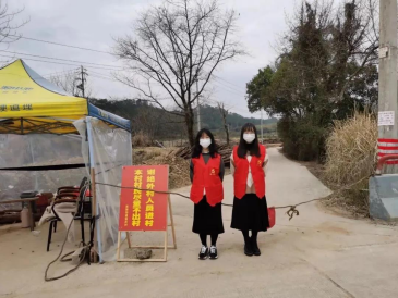 为响应国家号召,做好疫情防控,江西财经大学统计学院185班何慧婷同学主动参加执勤志愿服务,每天从中午十二点到晚上六点负责路口的执勤工作。主要职责便是在路口拦截外村人员,严格把控本村人员的出入,每户人家两天一次出门采购并且只能由一人出门,进出入都需要登记名字和来往出入地,并进行体温的测量,严格做到十个“一律”。她坚信若人人都能为疫情防控献一份力,我们定可以早日战胜病毒,迎春归来。