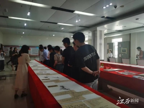 红色记忆书法、红色海报、红色剪纸作品……场外,江西省高校“红色走读”优秀作品巡回展也吸引了大批观众观看,高校学子们用各种形式展现出他们在“红色走读”之后的所思所想所悟。