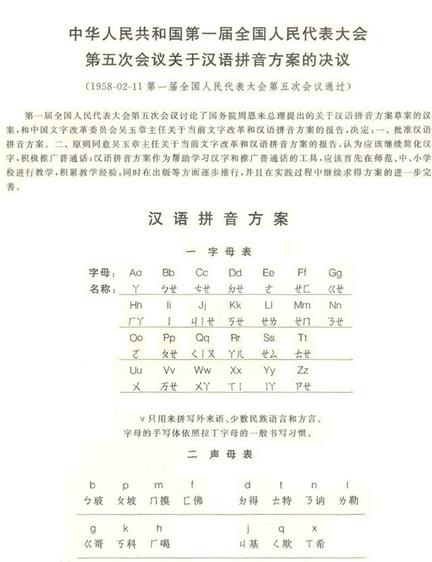 1958年2月11日,第一届全国人民代表大会第五次会议批准颁布《汉语拼音方案》