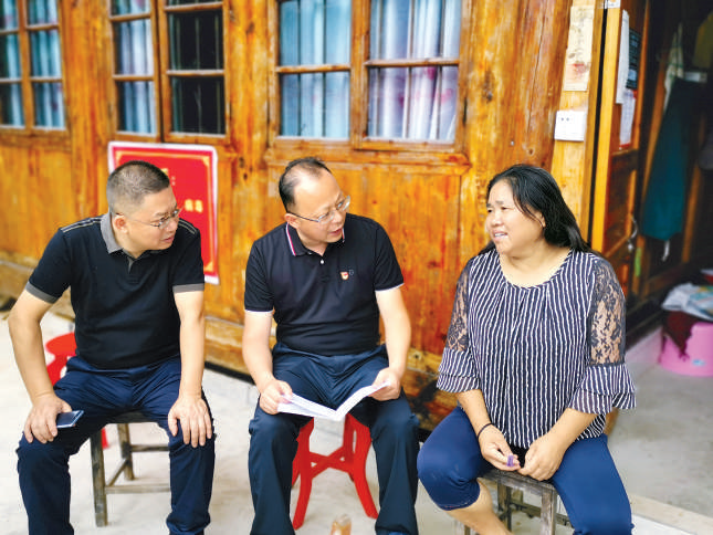 刘勇会(中)在柘溪林场白水村走访贫困户。